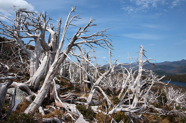 ![]() タスマニアの崖の上にそびえ立つ、樹齢12000年のクローンです。 下の湖までがひとつの固体です。 |