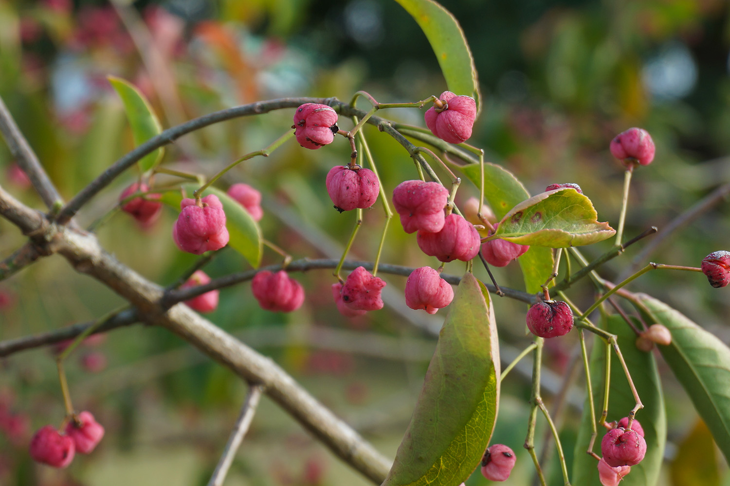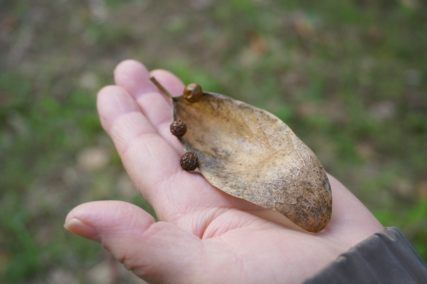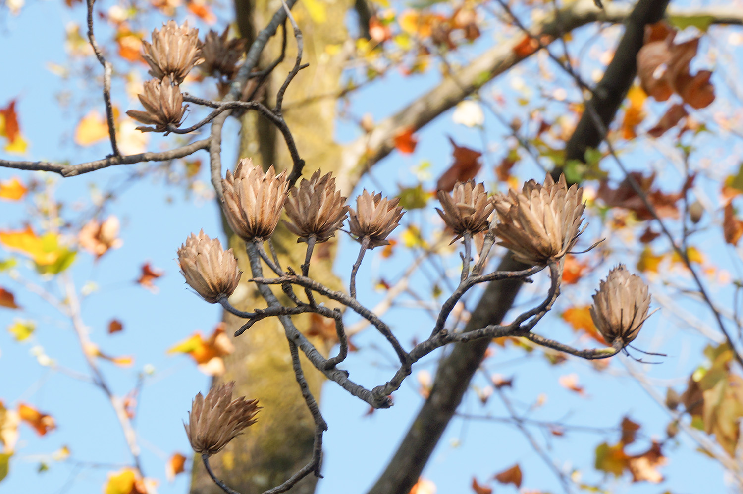12月になると色づくエノキの大木がメイン。またこの時期に桜が咲いていて、小さな花でしたが、お花見も楽しみました。